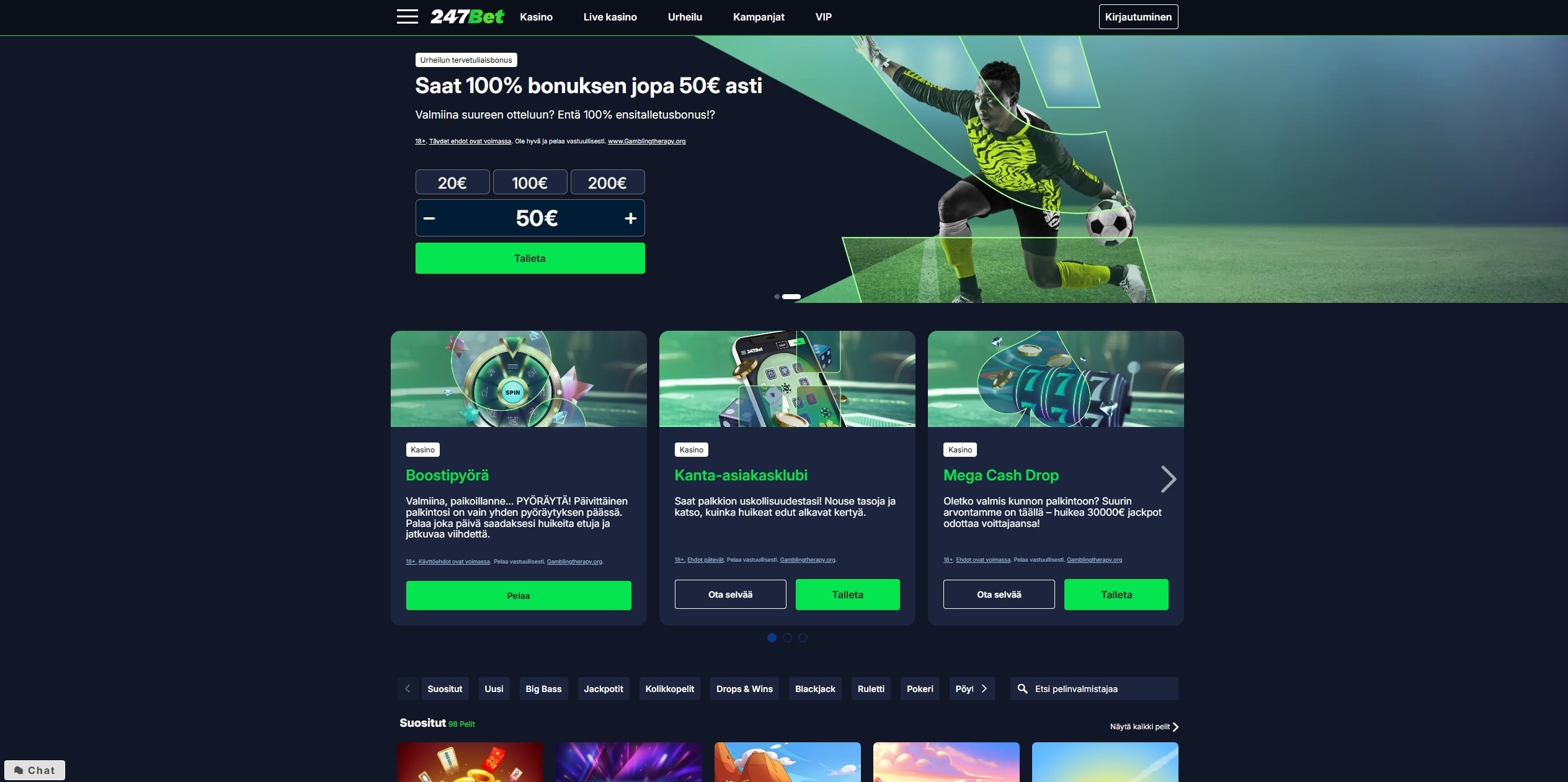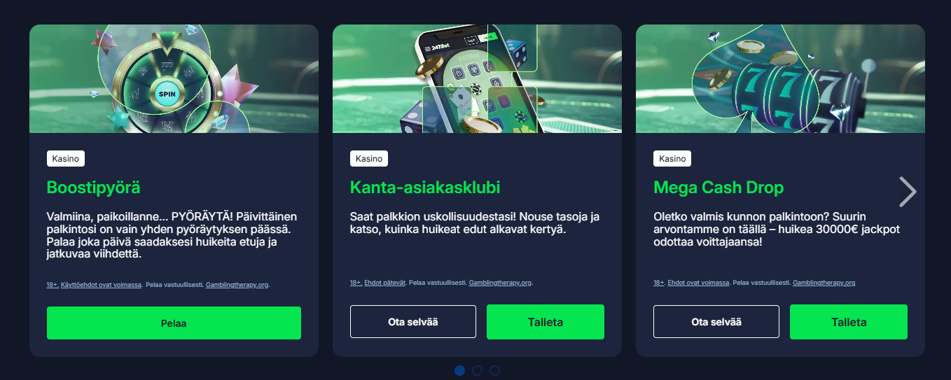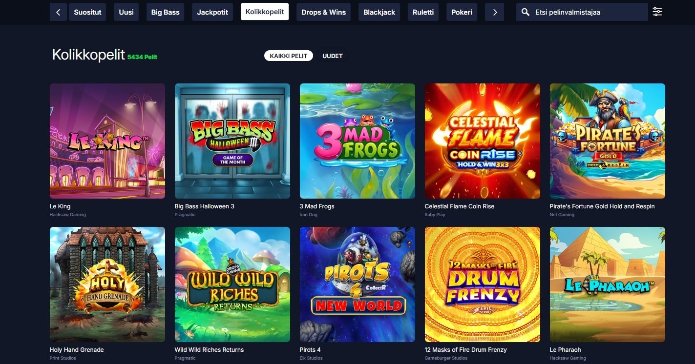 Suosituimpien pelien listalla näkyvät muun muassa Super Cash Boost Big Bad Bonus, Bullets and Bounty, Piggy Riches 3 Hog Heaven, Le Zeus ja Zombie School Megaways. Uusimpia lisäyksiä ovat puolestaan Texas Joker Em, Alice’s Wonder Tale, Thor Realms of Fortune, 777 Rush, Heads Will Roll, Stormborn ja Pyramid of Ra.