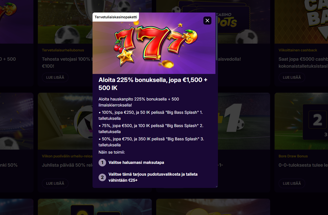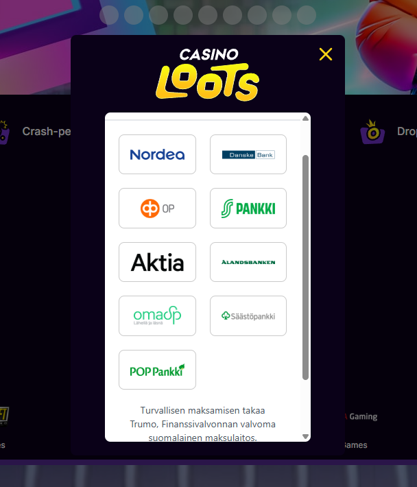 Suosituimpien pelien listalta löytyy sitä samaa osastoa mitä suomalaiset pelaajat tykkäävät muutenkin pelata tällä hetkellä. Löytyy esimerkiksi Gates of Olympus, Aviator, Sugar Rush, Wilds of Fortune, Bigger Bass Bonanza sekä Fortune Rabbit.