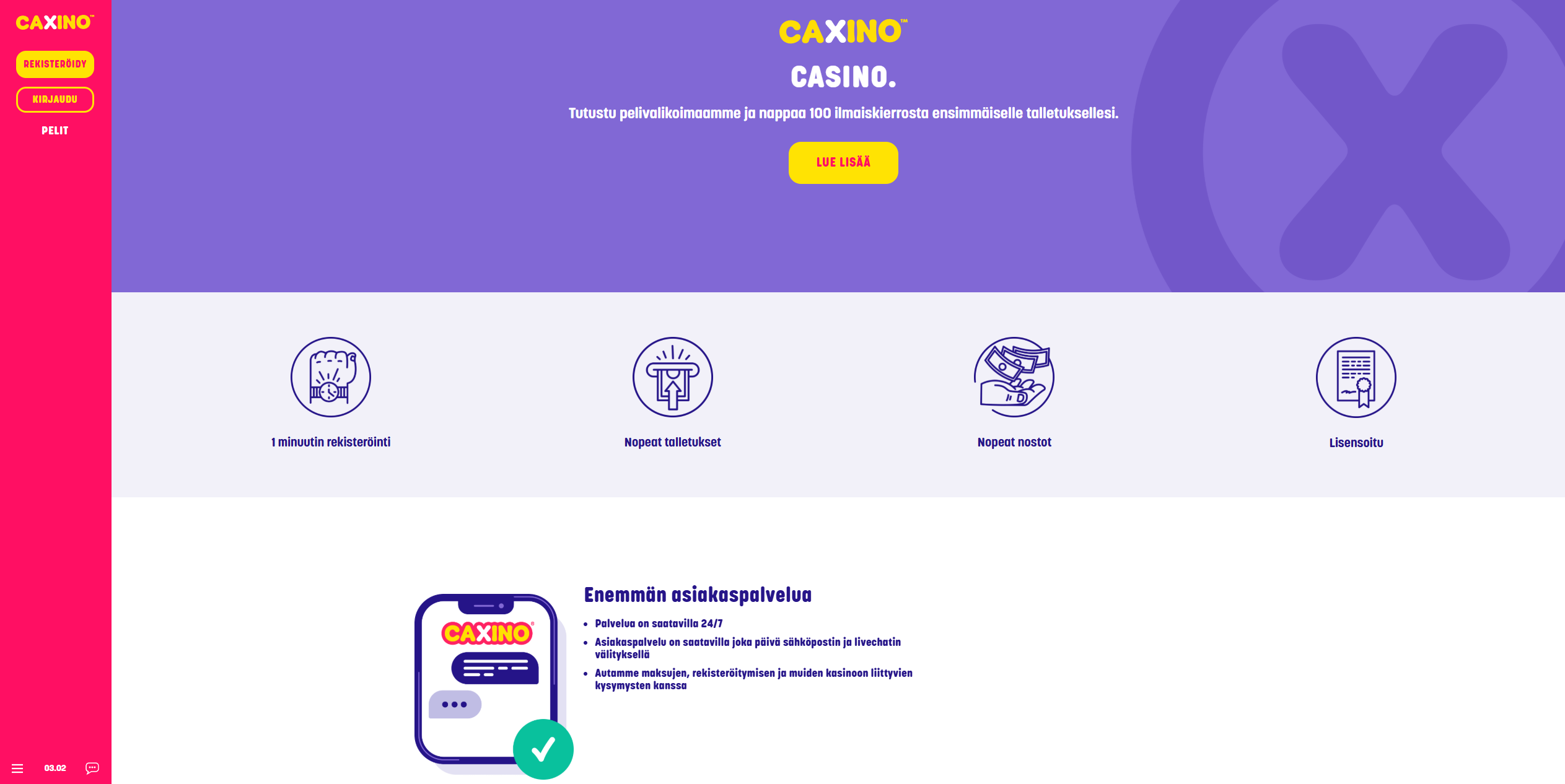 Caxinon pelivalikoima on niin monipuolinen, että sitä voisi jo kutsua pieneksi viihdeuniversumiksi. Yli 3000 pelin tarjonta kattaa kaiken olennaisen: slotit, jackpotit, pöytäpelit, livekasinon ja jopa arvat sekä bingot. Ja vaikka peliaulasta puuttuu erillinen raaputusarpojen painike, sanahaku “scratch” avaa silmiesi eteen lähes 50 arpaa.