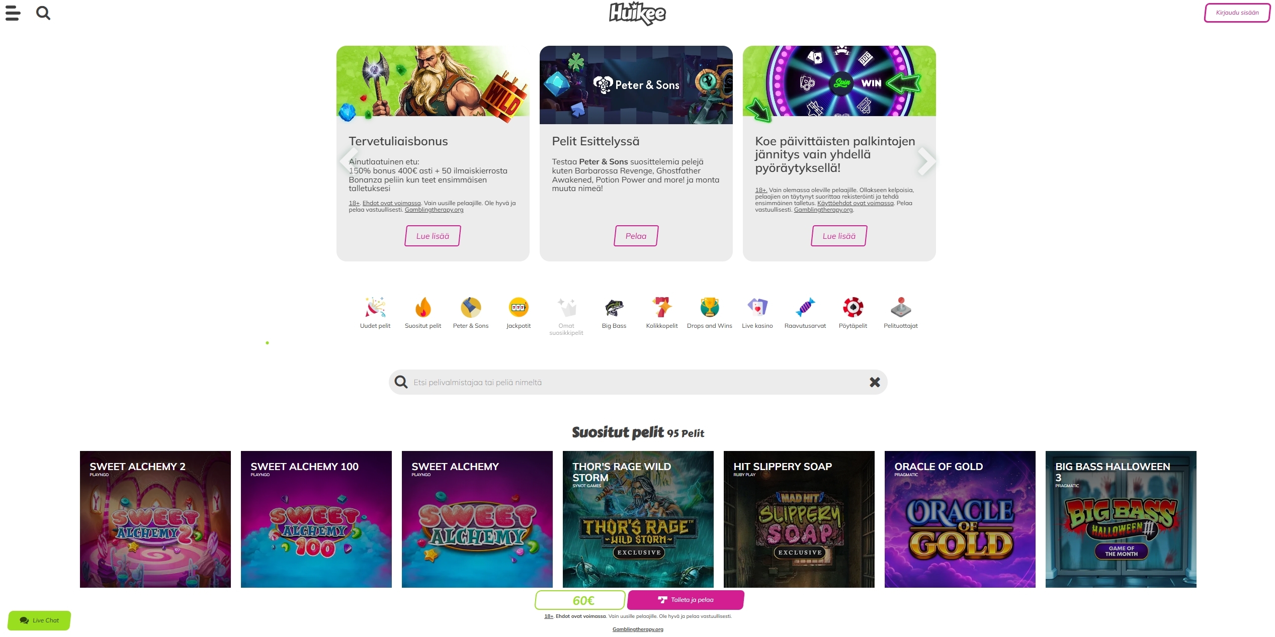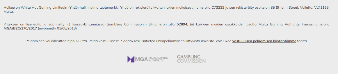 Turvallisuutta lisää entisestään se, että Huikeen taustalla toimii White Hat Gaming Ltd, yksi kasinoalan suurista ja vakavaraisista nimistä. Tämä yhtiö tunnetaan lukuisista menestyneistä brändeistä, kuten Vauhti Kasino, Pelataan, Simppeli ja Casimba.