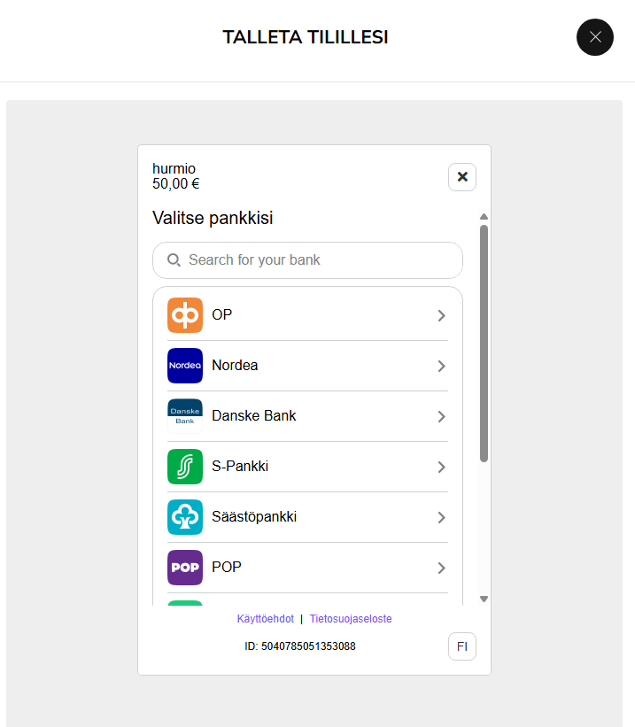 Hurmiokasinon testaaminen on helppoa ja riskitöntä, koska mukaan pääsee jo 1 euron minimitalletuksella. Et tarvitse rekisteröintiä, vaan voit tallettaa ja tunnistautua suoraan etusivulta omilla verkkopankkitunnuksillasi.