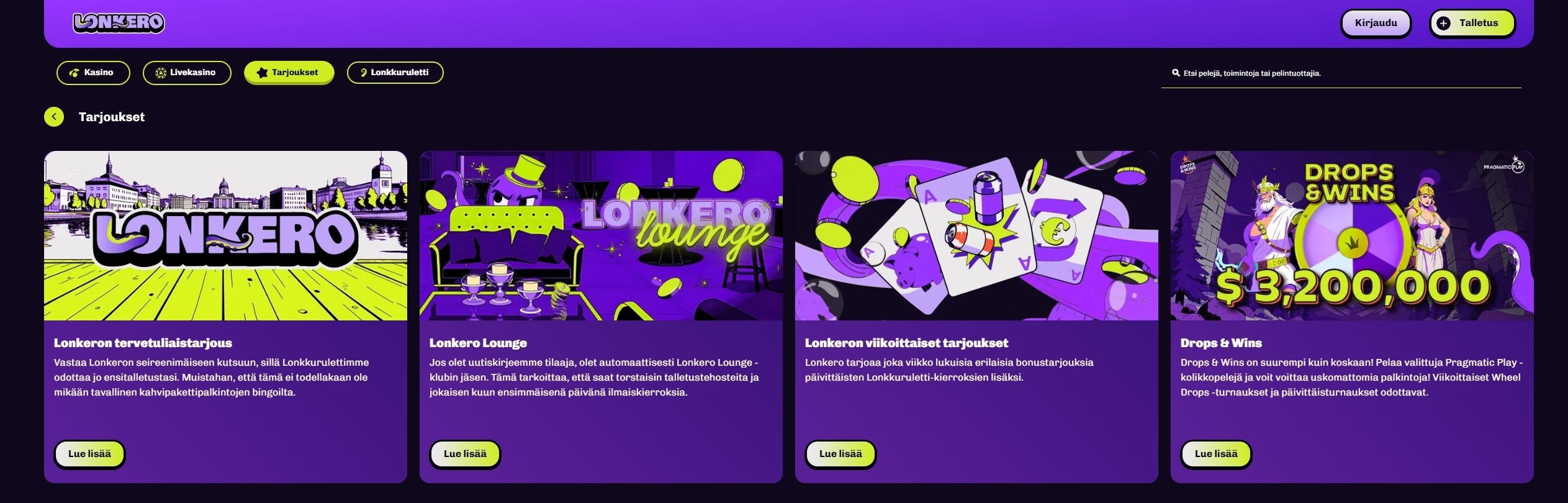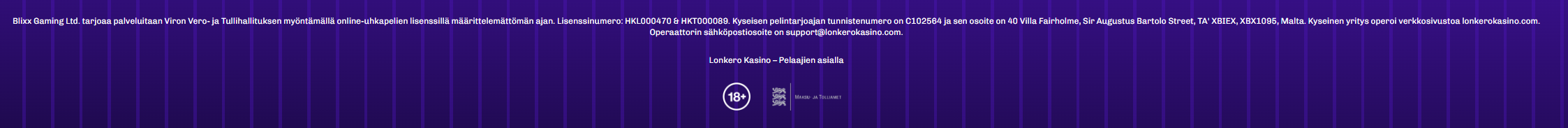 Kaiken kaikkiaan Lonkero Casino on onnistunut luomaan raikkaan ja toimivan kokonaisuuden, jossa kekseliäs brändi, helppo käytettävyys ja reilu meininki kulkevat käsi kädessä. Ja mikä parasta: kotiutukset toimivat sulavasti, nopeasti ja täysin verovapaasti!