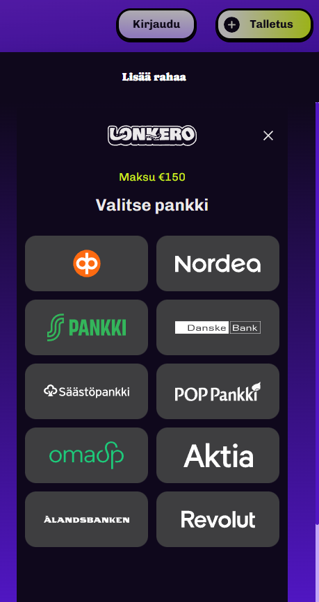 Testasimme Lonkero Casinoa oikealla rahalla, ja vaikka odotuksemme olivat jo valmiiksi korkealla, onnistui kyseinen pikakasino yllättämään meidät positiivisesti. Tässä on peliympäristö, joka erottuu joukosta eikä ainoastaan nimensä ansiosta, vaan myös huolellisesti viimeistellyn kokonaisuutensa takia!