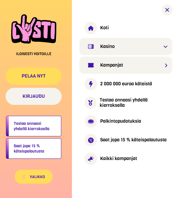 Lysti Casino operoi Viron lisenssillä, eli se on täysin verovapaa suomalaisille pelaajille!