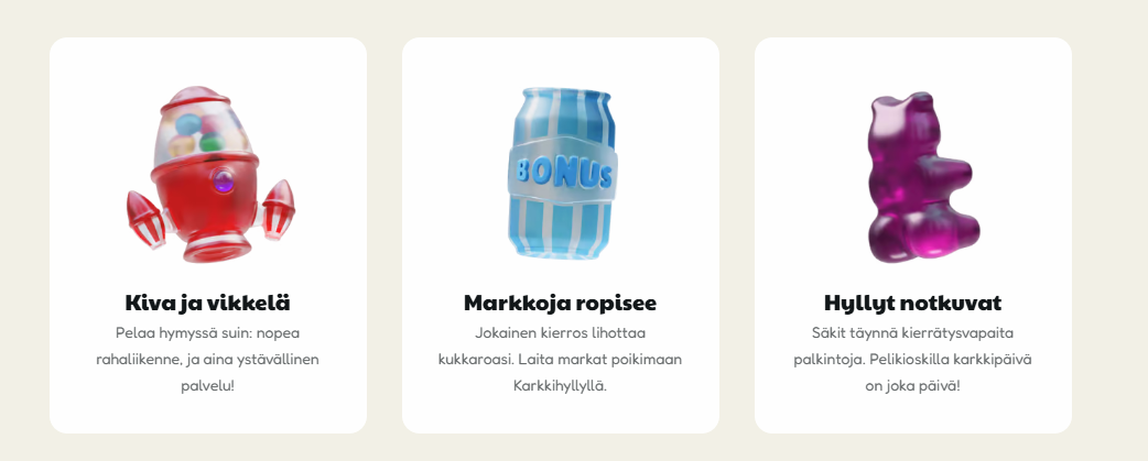 Kasinon suosituimpien pelien lista näyttää herkulliselta: Sweet Bonanza, Sugar Rush 1000, Book of Dead, Gates of Olympus 1000, Fire in the Hole 2, Temple of Torment ja Money Train 4 pitävät pintansa kestosuosikkeina.