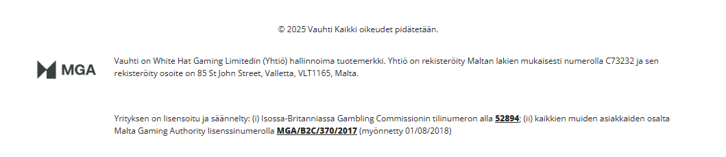 Lisäksi Vauhti Kasino toimii Maltan MGA-lisenssillä, mikä tekee kaikista voitoista täysin verovapaita suomalaisille pelaajille. Tämä yhdistettynä yli 3000 pelin valikoimaan ja vuorokauden ympäri saatavilla olevaan asiakaspalveluun takaa, että kokonaisuus on kunnossa.