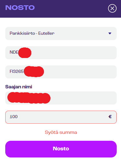 - Liitä mukaan viitenumero viimeisimmästä Euteller- tai Siirto-talletuksestasi.