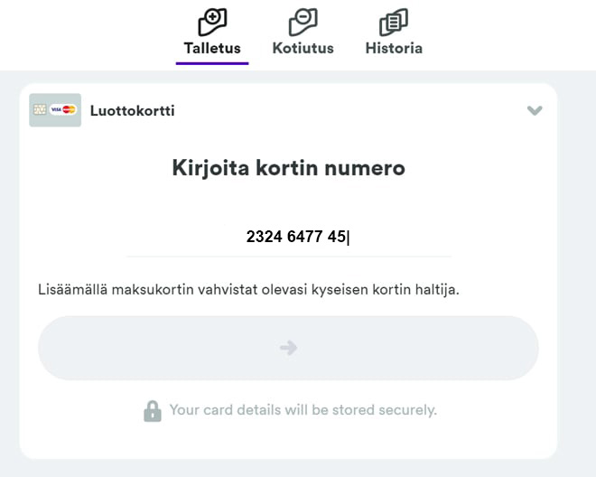 - Nopeat ja helpot talletukset siirtyvät pelitilille heti.