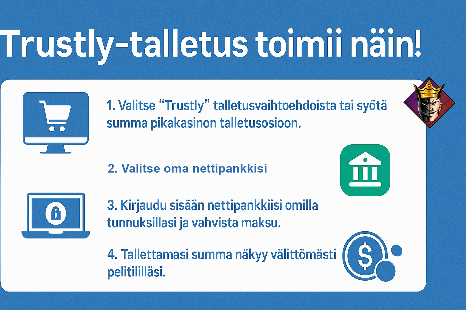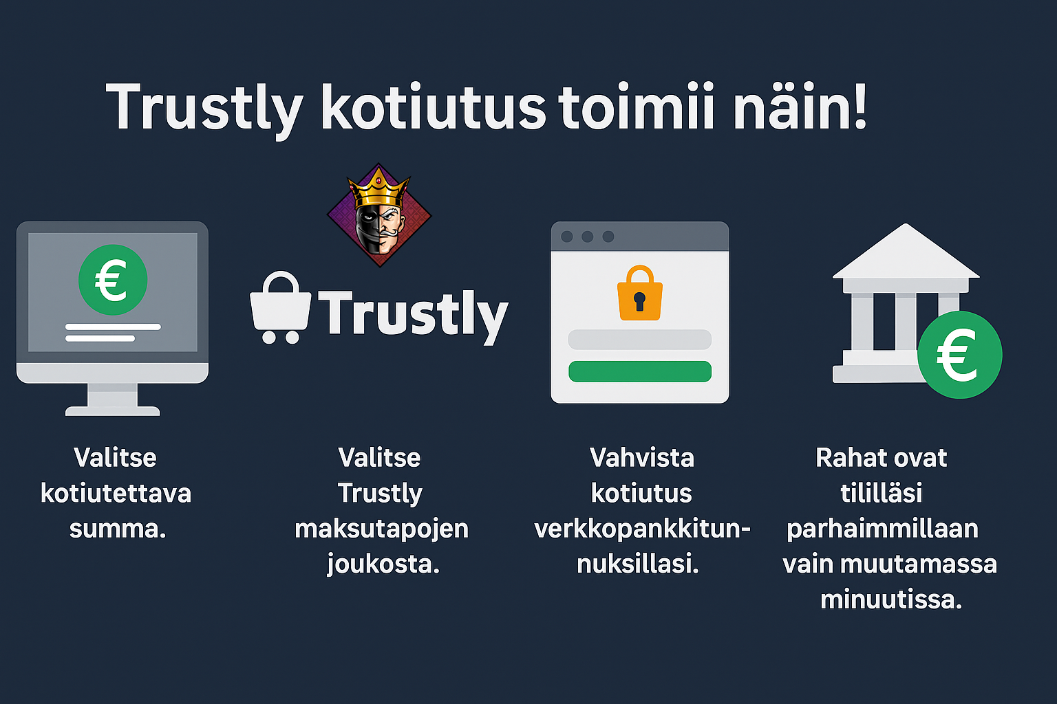 Homma menee näin: pikakasinoilla voit unohtaa tylsien rekisteröintilomakkeiden täyttelyn kokonaan. Riittää, että teet ensitalletuksen verkkopankkitunnuksillasi Trustlyn kautta, ja olet valmis hyppäämään pelien pariin saman tien.