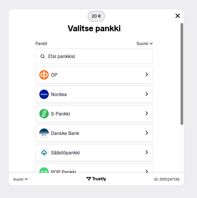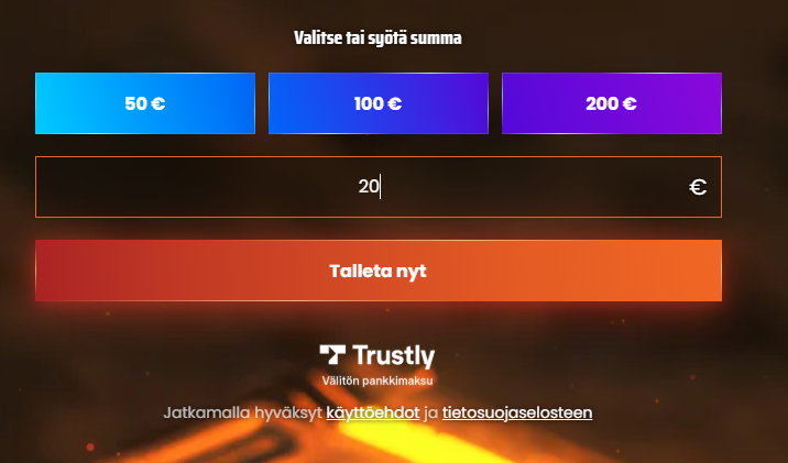 Jos tykkäät klassisesta tyylistä, käytössäsi voivat olla Trustlyn lisäksi myös korttimaksut, nettilompakot, prepaid-kortit, mobiilimaksut ja jopa kryptovaluutat. Jos taas haluat pelata talleta ja pelaa -periaatteella, Trustly hoitaa rahansiirron pankkitunnuksilla.