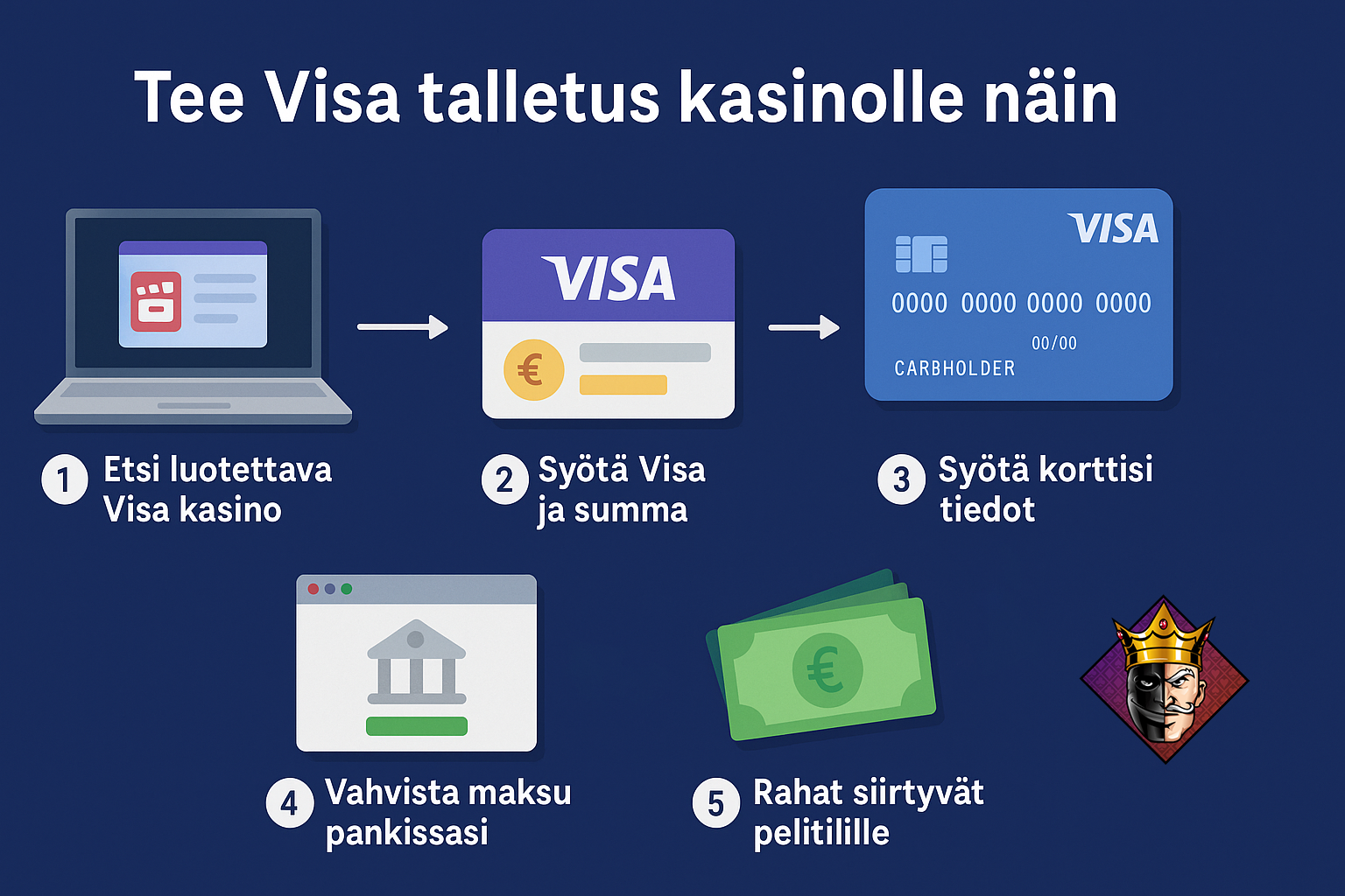 Vastuullinen pelaaminen on tärkeä osa Visa kasinoilla pelaamista. Koska Visa-talletukset onnistuvat nopeasti ja helposti, on tosi tärkeää pitää oma rahankäyttö hallinnassa. Useimmat Visa kasinot tarjoavat työkaluja, kuten talletusrajoja, aikarajoja ja itseasetettavia pelitaukoja, joiden avulla pelaaminen pysyy viihteenä. Lisäksi oman pankin kautta voi asettaa kortille käyttörajoituksia tai estää kasinomaksut kokonaan.